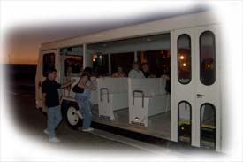 Our red trolley creates a special holiday ambiance for the Cajun Christmas Experience while our open-air tram provides a magical ride in our Polar Express Tour.